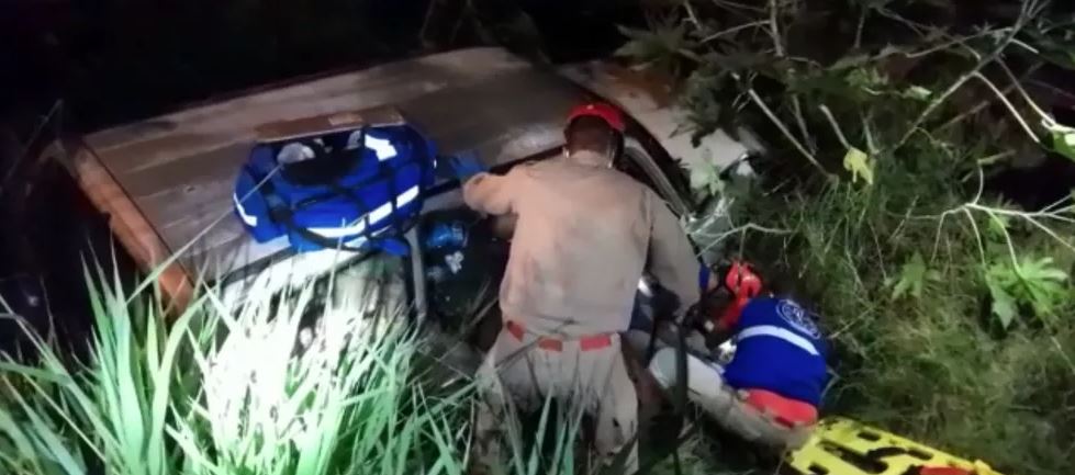 O carro foi retirado do barranco onde caiu e levado para o batalhão da Polícia Militar.