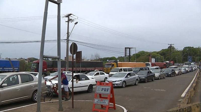 | Veículos ficaram parados por mais de uma hora, em Foz do Iguaçu ?? Foto: Zito Terres/RPC |