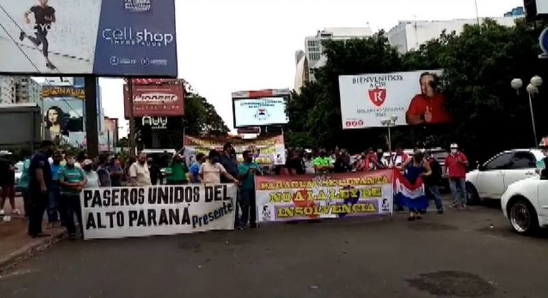 Pequenos transportadores paraguaios protestam e bloqueiam trânsito na Ponte Internacional da Amizade