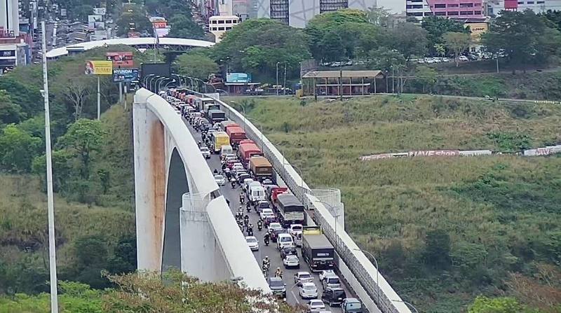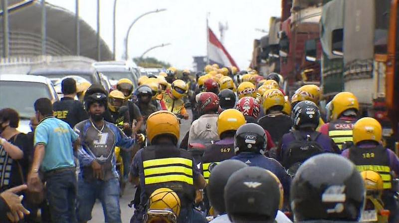 | Protesto congestionou o trânsito na ponte, em direção a Cidade do Leste, no Paraguai, nesta quinta-feira (29) ?? Foto: RPC/Reprodução |