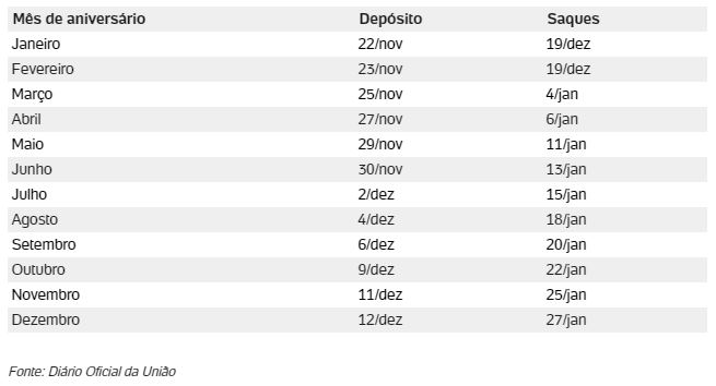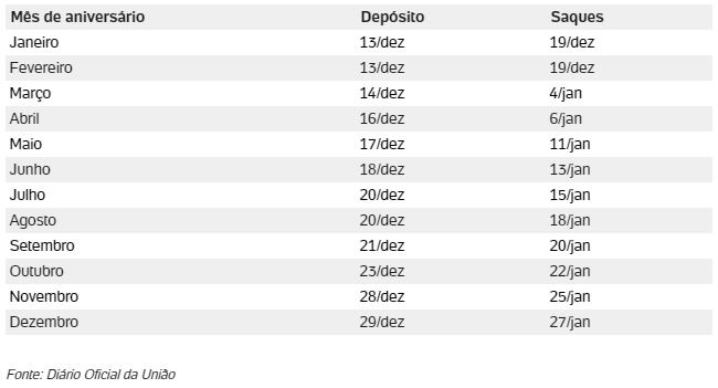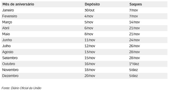 Veja a seguir o cronograma completo dos próximos pagamentos divulgados: